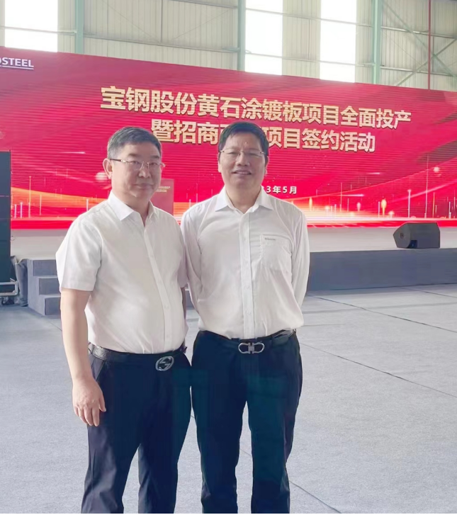 董事長劉國民和寶鋼股份黃石涂鍍板有限公司產品總監(jiān)顧進榮